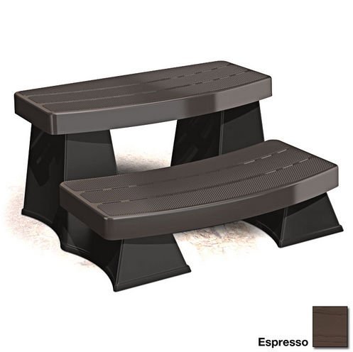Product DescriptionSure Step 2 is manufactured from a rotocast of UV-stabilized and recyclable high-impact material (HDPE). The Sure Step 2 is designed to withstand the most severe weather conditions year after year, with zero-maintenance effort and expense. Its attractive simulated wood grain finish provides a slip-free surface upon which to step, while self-leveling cushioned pads provide surface protection and keep Sure Step 2 in position next to your hot tub spa.
